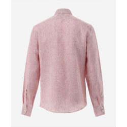 L’élégance estivale dans sa version la plus raffinée. Cette chemise en lin rouge à fines rayures séduit par son équilibre parfait entre caractère et subtilité.