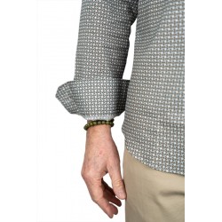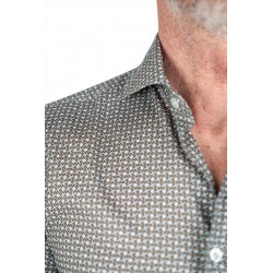 Son imprimé graphique raffiné mêlant des nuances de brun, écru et touches de bleu apporte du caractère tout en restant élégant et facile à porter. La coupe moderne, associée à un col classique et une fermeture boutonnée, assure une silhouette soignée et polyvalente.